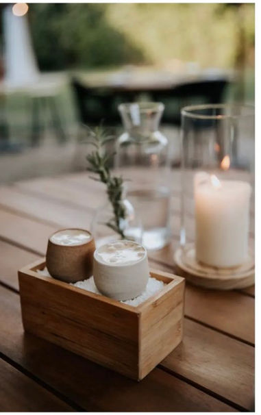 2024 : oeufs en céramique pour les mises en bouche et assiettes vagues-nacrées